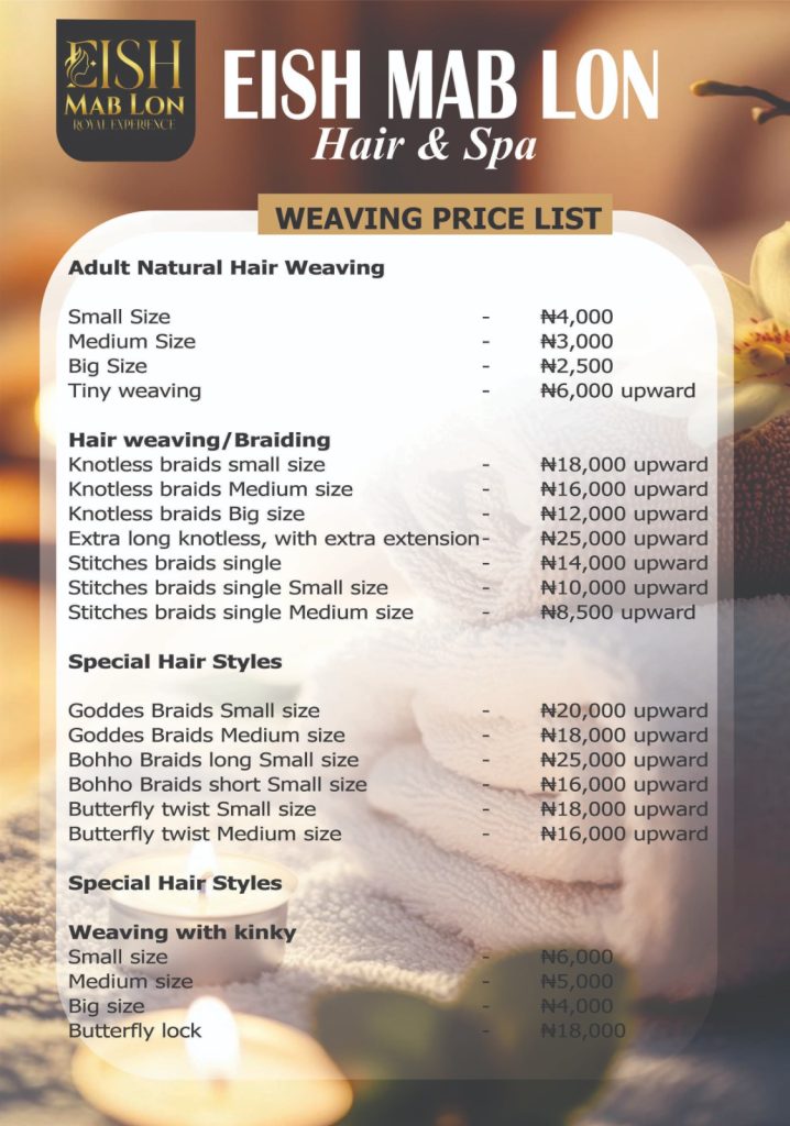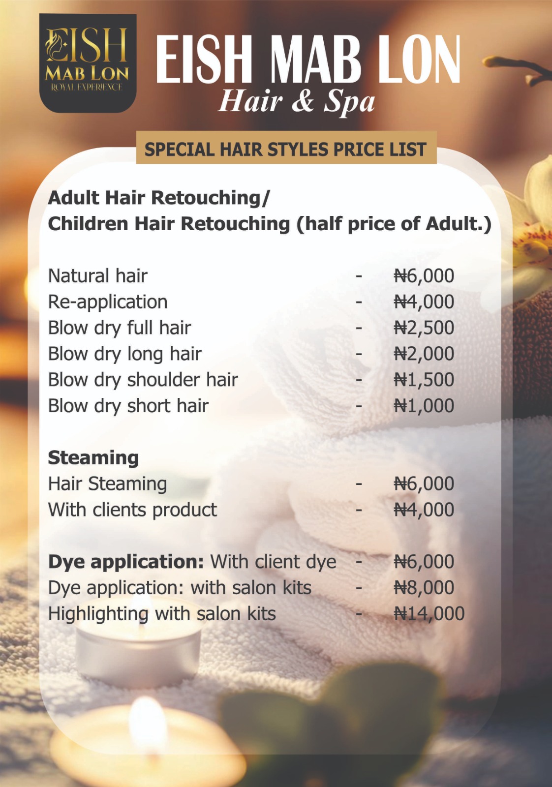 Visiting Eishmablon is always a joy. The hair treatments truly revived my dry hair, and the manicure made my hands look gorgeous. The warmth and hospitality here make me feel like I’m visiting family." — Aondongu I.